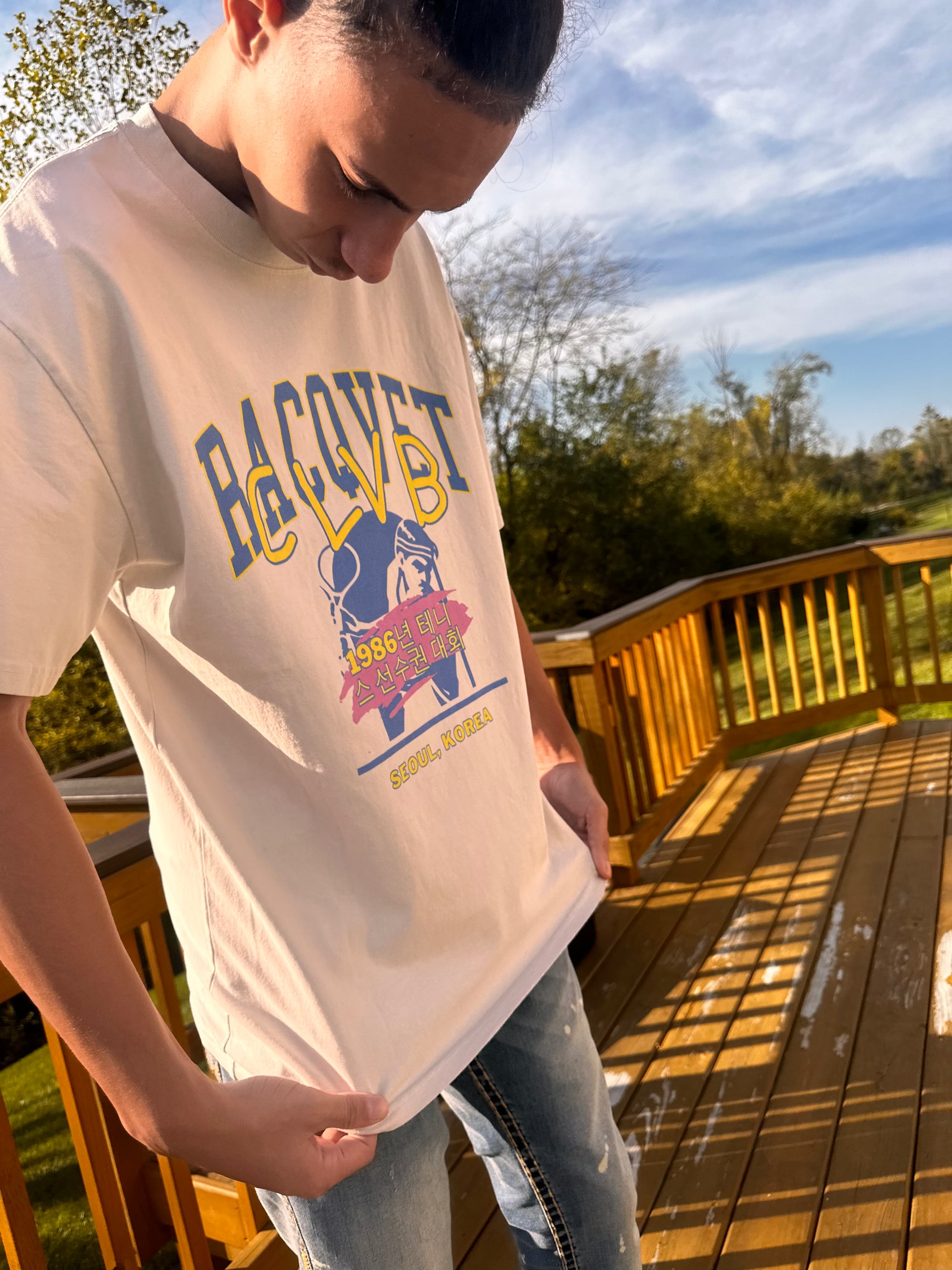 The Racqvet Clvb “Seoul 1986” Tee pays tribute to the golden era of bold style, tennis culture, and Seoul’s electric street energy. Designed with a retro collegiate arch logo and neon-inspired graphics, this oversized tee captures the Y2K vibe while honoring South Korea’s global influence on streetwear and culture.